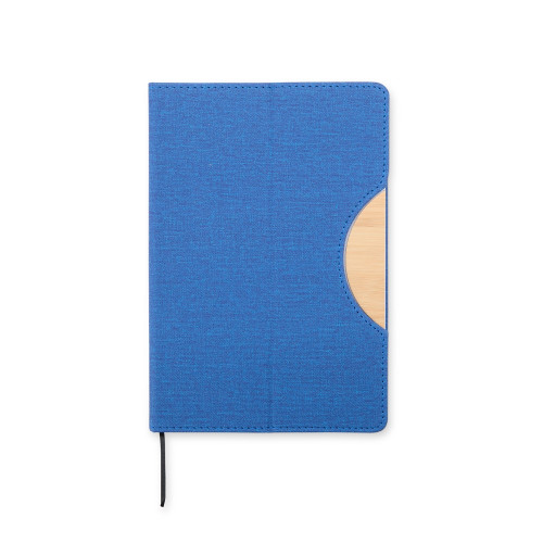 Descrição: A nossa caderneta traz funcionalidade e estilo em um design leve e prático. Feita em rPET, com cerca de 96 folhas brancas pautadas, é perfeita para anotações, e conta com um suporte na capa feito de papelão, com revestimento similar ao bambu, ideal para manter o aparelho celular firme. A capa dobrável e flexível facilita o transporte, e o marcador de página em cetim agrega um toque de sofisticação.