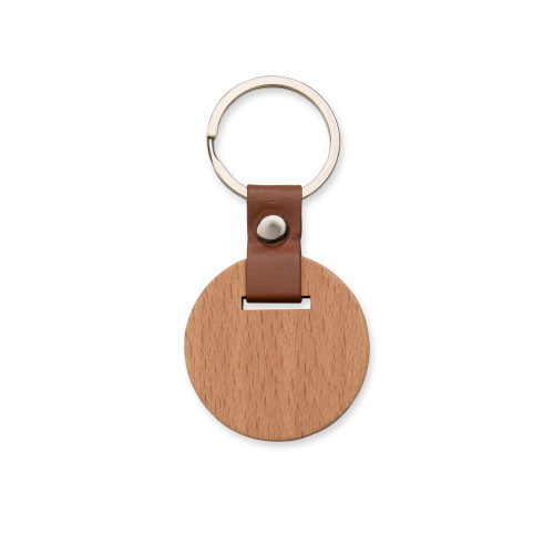 Descrição: Feito em madeira com um delicado detalhe em couro sintético, este chaveiro é a escolha perfeita para quem busca organizar suas chaves com um toque rústico e de modernidade ao mesmo tempo.