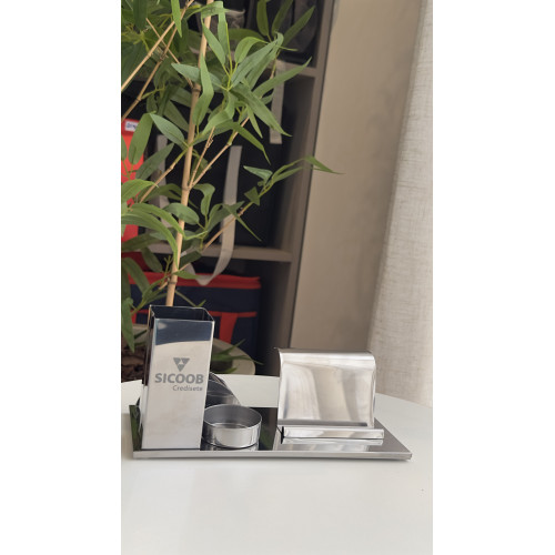 O Kit Escritório 4 em 1 Personalizado em Inox Espelhado é um brinde corporativo sofisticado e funcional, ideal para empresas que desejam fortalecer sua marca com um produto elegante, útil e de alto valor percebido.