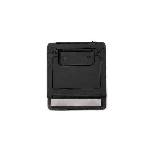 Descrição: Suporte para celular compacto feito em plástico. Ideal para superfícies planas, possui ajuste de inclinação de até 75 graus. Conta também com almofada emborrachada antiderrapante para oferecer um apoio mais estável ao aparelho durante o uso.