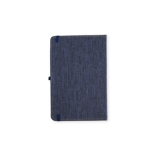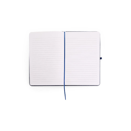 Descrição: Caderneta com capa dura em linho, fechamento em elástico, marca-páginas em fita de cetim e porta-caneta elástico. Possui cerca de 80 folhas brancas pautadas.