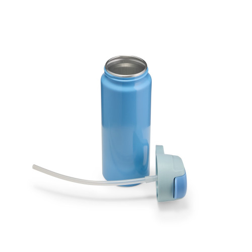 Descrição: Um squeeze de alumínio de design prático que deixa a rotina de hidratação mais ágil. Com capacidade máxima de até 600 ml, o squeeze possui uma tampa e um bico flexível de plástico acoplado a um canudo do mesmo material. Além de contar com o uma alça fixa na tampa, o bico é protegido por uma tampa própria, evitando vazamentos e o contato direto com a sujeita, garantindo maior higiene ao squeeze.