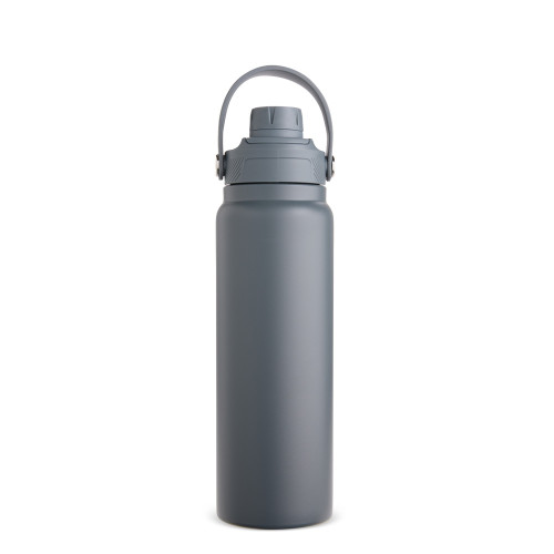 Descrição: Garrafa térmica em inox com capacidade de até 800ml. Conta com estrutura de parede dupla e vedação a vácuo, o que possibilita manter a temperatura de líquidos por mais tempo. Possui tampa plástica rosqueável com protetor para o bocal e alça para transporte.