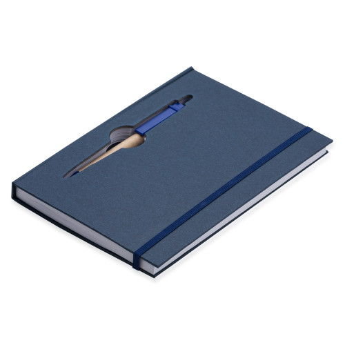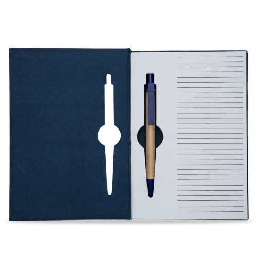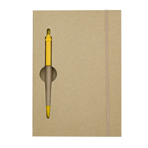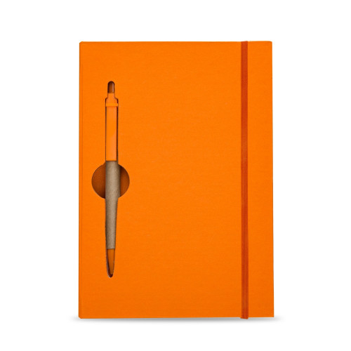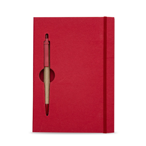 Descrição: Bloco de anotações ecológico colorido com caneta. Capa de papelão com recorte vazado(as folhas também) no qual é possível visualizar a caneta na parte interna, possui fita elástica para lacrar o bloco e verso liso. Possui caneta ecológica de papelão com clip e ponteira plástica e aproximadamente 120 folhas brancas pautadas que podem ser destacadas.