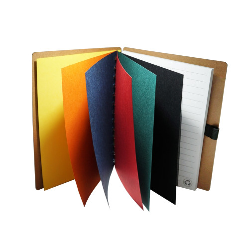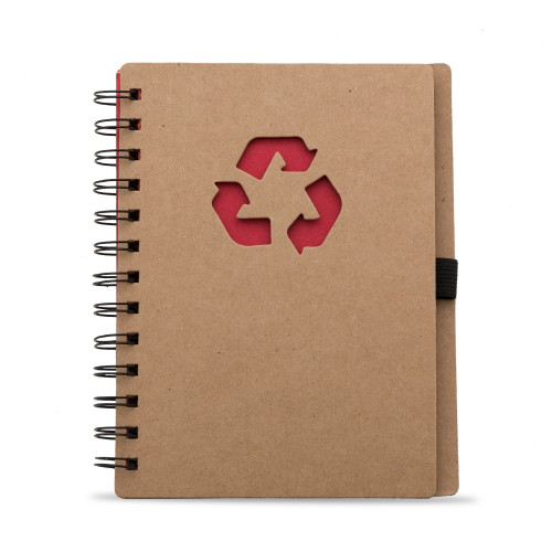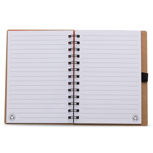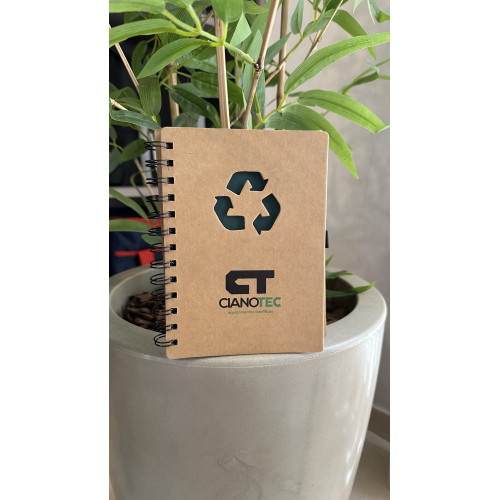 Disponível em azul, amarelo, laranja, preto, verde e vermelho; o item possui aproximadamente 70 folhas brancas pautadas com o logo reciclado na lateral inferior e conta com um suporte elástico para caneta (também disponível no site da Imperial Brindes), tornando o transporte e o uso ainda mais práticos.
