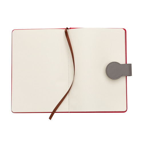 Descrição: Bloco de anotações com fechamento imantado. Capa produzida em tecido sintético texturizado, contém aproximadamente 96 folhas amarelas sem pauta e marcador de página em cetim.