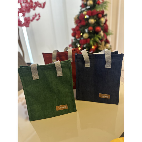 Descrição: Bolsa térmica oxford com capacidade de 5 litros com fechamento em velcro. Contém alças de mãos e plaquinha personalizável fixa.