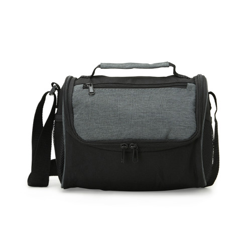 Descrição: Bolsa térmica de poliéster com dois compartimentos, capacidade de 7 litros. A bolsa possui revestimento térmico em PEVA atóxico, alça de mão, bolsos laterais telados e alça transversal.
