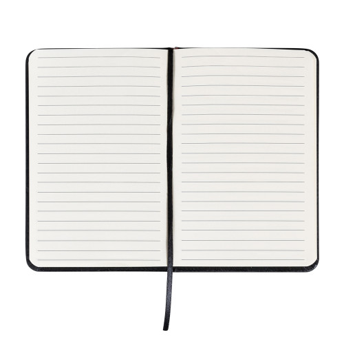 Descrição: Caderneta emborrachada com elástico para lacre e marcador de página em cetim, contém aproximadamente 76 folhas com pauta na cor marfim.