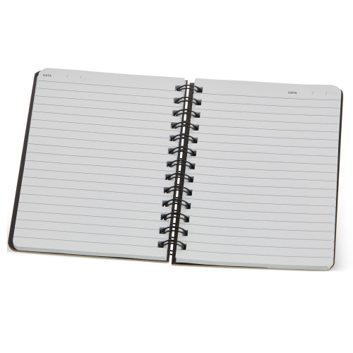Descrição: Caderneta capa dura em kraft com wire-o. Contém aproximadamente 80 folhas brancas pautadas.