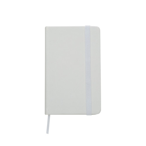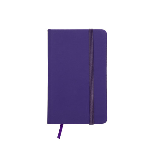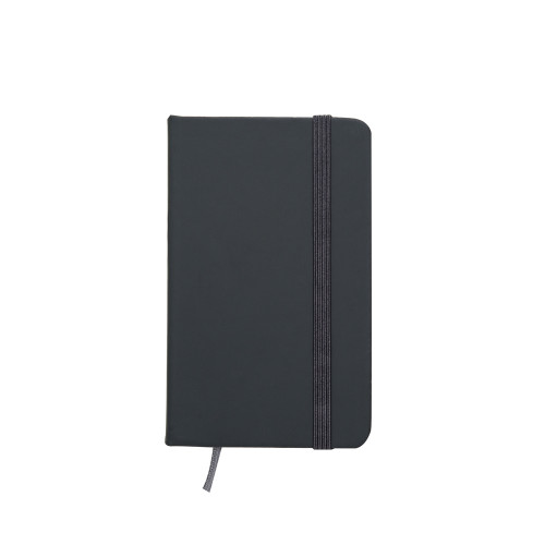 Descrição: Caderneta tipo moleskine emborrachado de frente e verso liso, marcador de página em cetim e fita elástica para fechar. Contém aproximadamente 80 folhas amarelas pautadas.