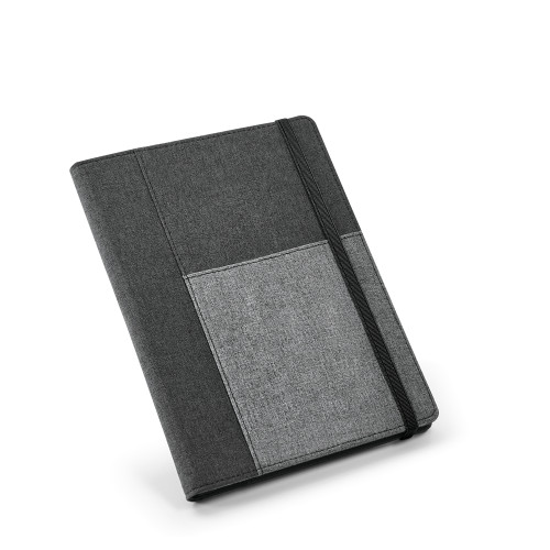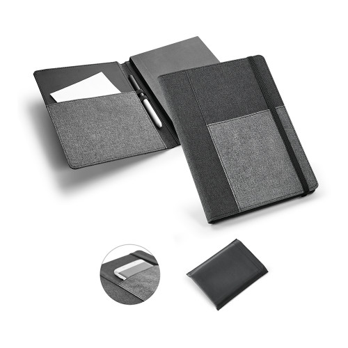 Capa com caderno. Tecido em poliéster. Caderno removível com 80 folhas não pautadas. Com bolso interior e porta esferográfica. Fornecida em embalagem de non-woven. Esferográfica não inclusa. 160 160 x 220 mm | Bolsa: 205 x 250 mm