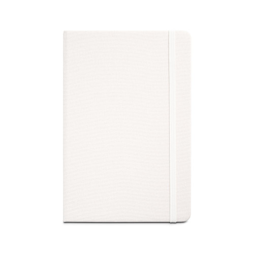 Caderno A5 em PET reciclado com tratamento antibacteriano, segundo a certificação ISO 20743. Contém 80 folhas pautadas cor marfim, em papel proveniente de gestão florestal sustentável, elástico e fita separadora. 140 x 210 mm