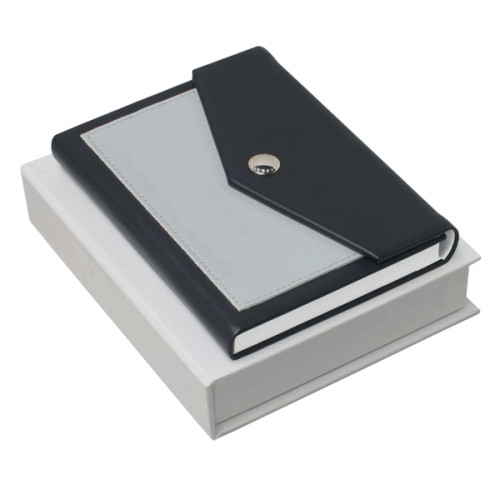 Caderno. C. sintético. Fecha com botão. Com 80 folhas lisas. Fornecido em caixa de oferta. 105 x 148 x 15 mm