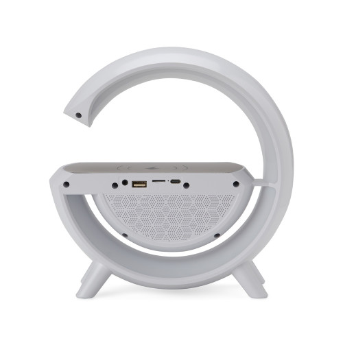 Descrição: Caixa de som com carregador por indução e luminária. Possui 6 modos de iluminação, opera nos modos bluetooth, rádio FM, auxiliar P2, USB e TF (cartão MicroSD). Para desfrutar do carregamento por indução (sem fio) é fundamental que o celular possua a tecnologia QI, o produto só armazena bateria para funcionamento próprio, para funcionar a indução precisa estar conectado a uma fonte de energia.