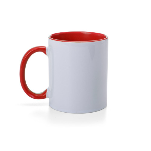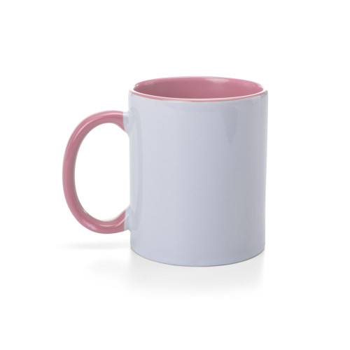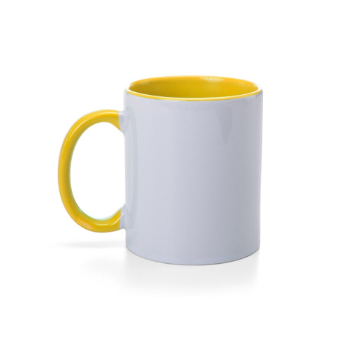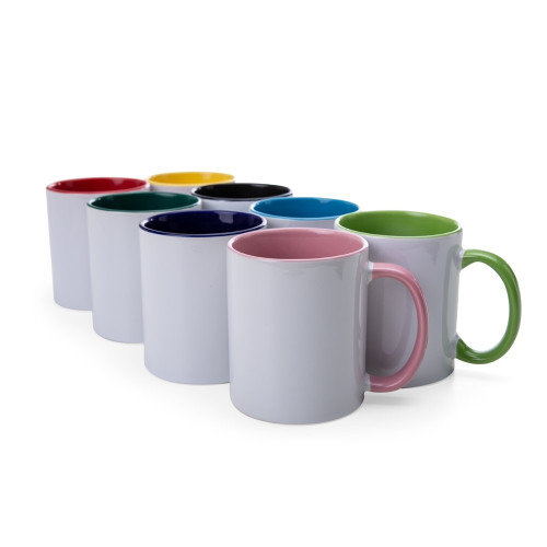Descrição: Caneca de cerâmica 350 ml branca com pegador e parte interna colorida.