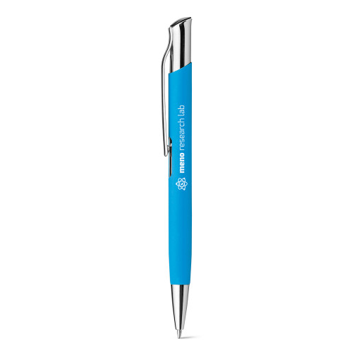Esferográfica. Alumínio. Acabamento emborrochado. ø10 x 137 mm