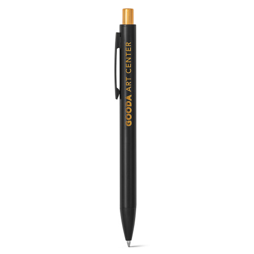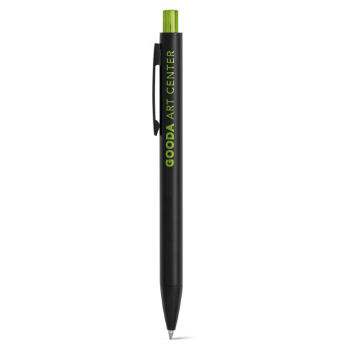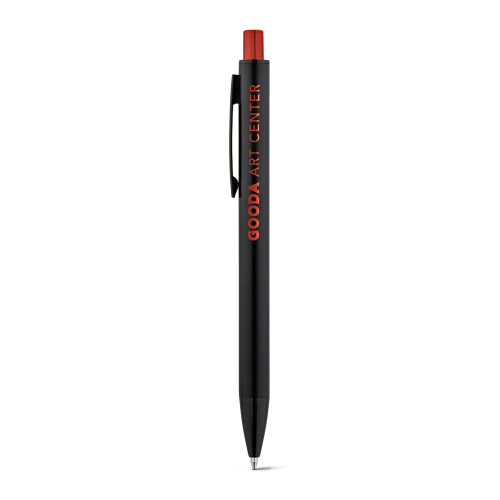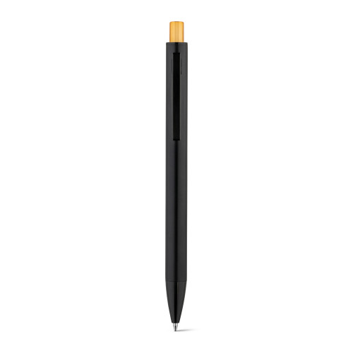 Esferográfica em alumínio com acabamento mate e botão com acabamento brilhante. Corpo com duplo acabamento. ø10 x 140 mm