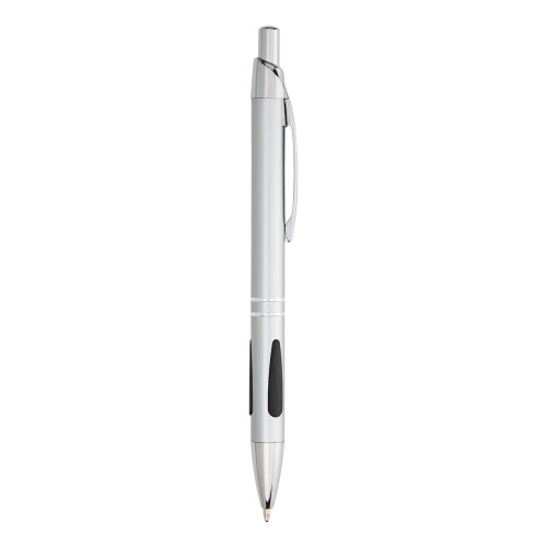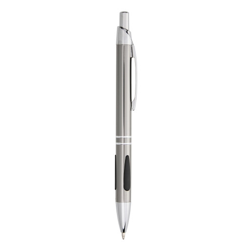 Descrição: Caneta metálica com detalhe emborrachado, acionamento por clique e carga esferográfica azul 1.0mm.