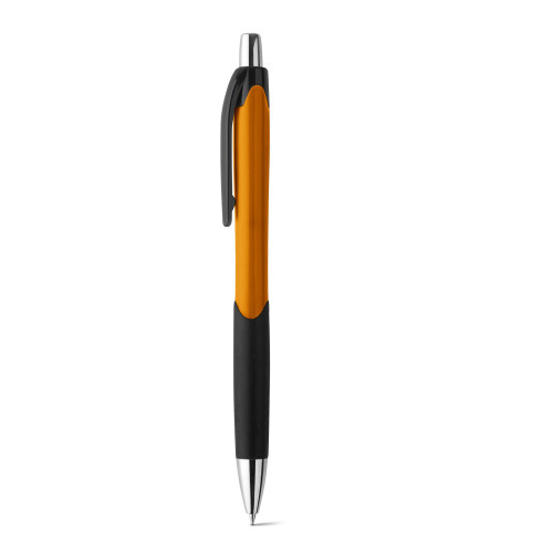 Esferográfica em ABS com grip, acabamento brilhante e ponteira cromada. Até 1,5 km de escrita. ø10 x 138 mm