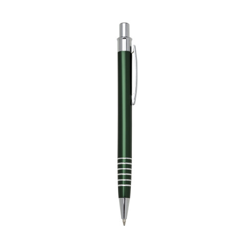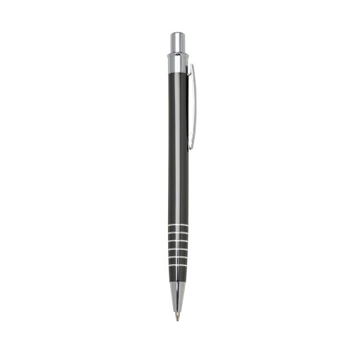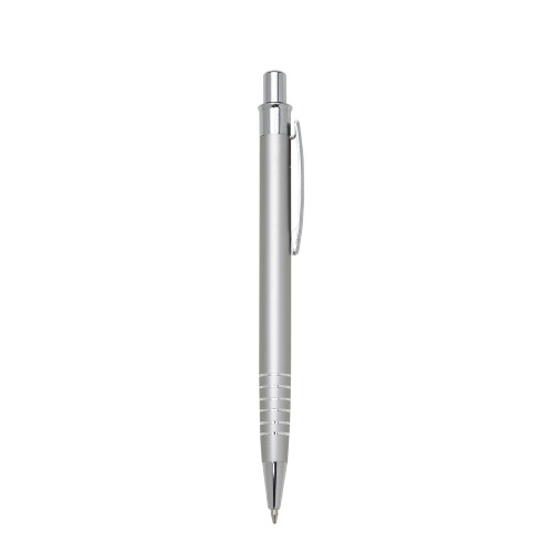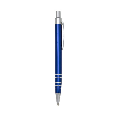 Descrição: Caneta metal inteira colorida com detalhes prata. Clip metal e possui seis aneis prateados na parte inferior. Aciona por clique.