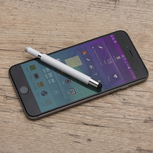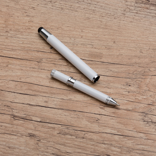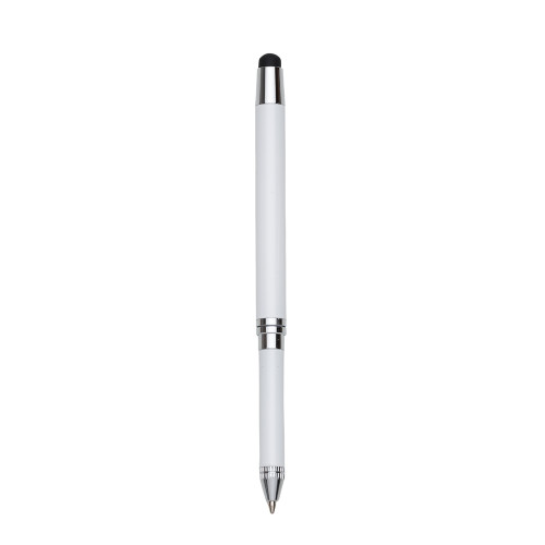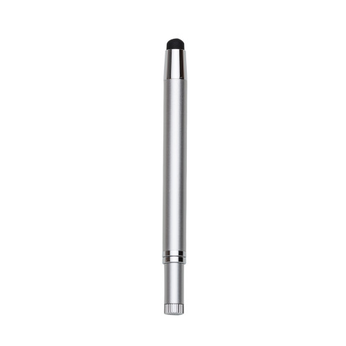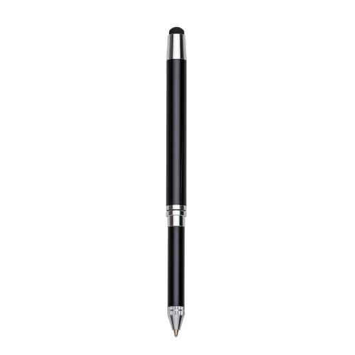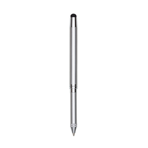 Descrição: Caneta metal touch, inteira colorida com detalhes prata. Ponta superior com borracha touch e lado oposto basta puxar para utilizar a caneta.