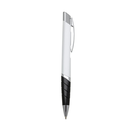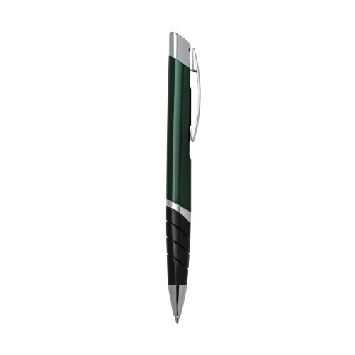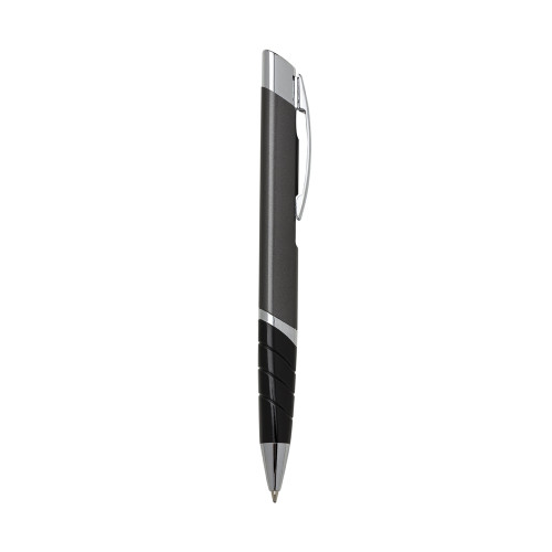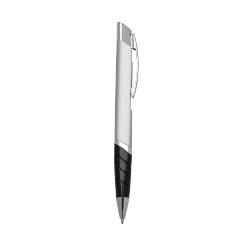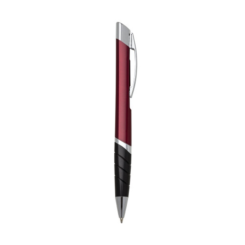 Descrição: Caneta metal triangular colorida com detalhes prata. Clip metal com detalhe vazado atrás(no corpo da caneta) e acionador com detalhe circular preto. Possui anel inferior prata e detalhe preto com três anéis em relevo. Aciona por clique.