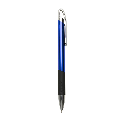 Descrição: Caneta metal colorida com detalhe emborrachado. Possui clip plástico prata brilhante, parte inferior com detalhe emborrachado preto com relevo. Aciona por clique.