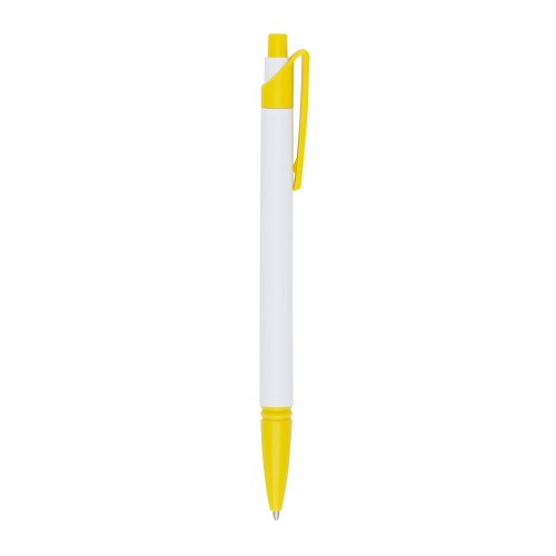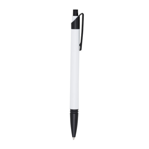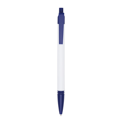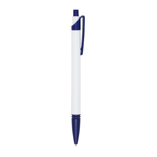 Descrição: Caneta plástica corpo branco com detalhes coloridos. Possui relevo na ponteira, aciona por clique, caneta com escrita macia, não falha. Excelente custo benefício, satisfação garantida.