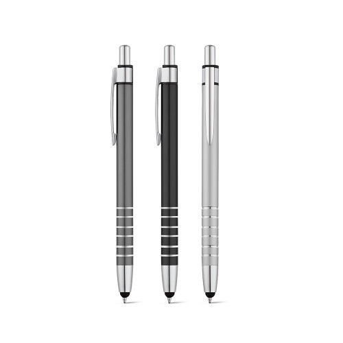 Caneta de alumínio. Com ponteira touch. 1,5km de escrita. ø9 x 138 mm
