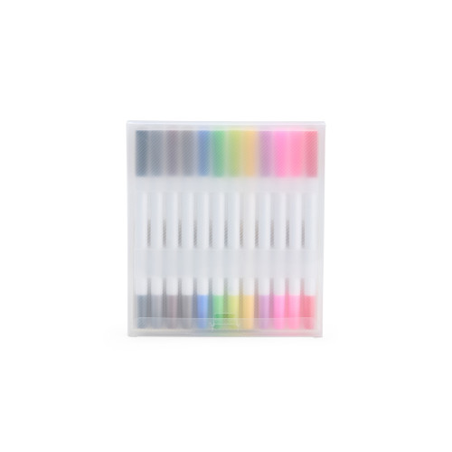Descrição: Este é um kit com 12 canetinhas de cores únicas e distintas com pontas duplas: uma fina e a outra em formato de ponta pincel. Apresenta uma variedade de cores ideais para favorecer a criatividade para a elaboração dos mais diversos tipos de atividades como desenho, pintura e escrita. Cada canetinha é à base de água, não tóxica e livre de odores, tudo para garantir mais segurança durante o uso. O kit de canetinhas vem em um estojo em plástico com fechamento prático. Observação: não adequado para crianças menores de 3 anos.