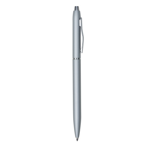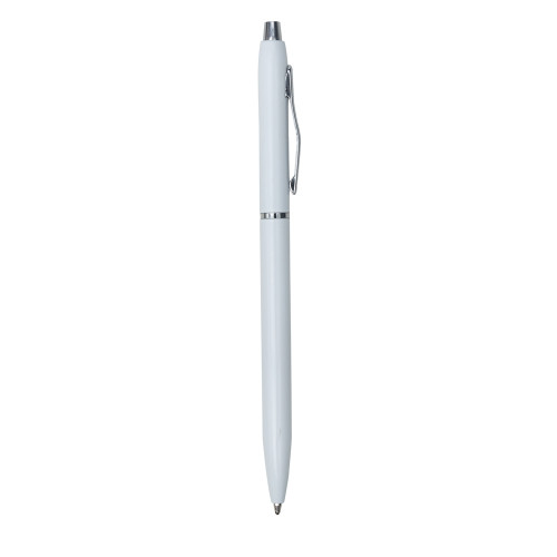 Descrição: Caneta metal colorida com detalhes prata. Clip metálico prata com envergadura inferior e anel central. Aciona por clique.