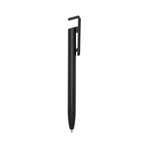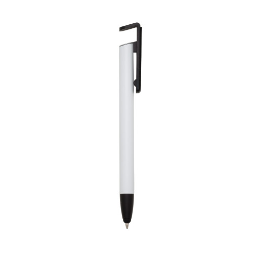Descrição: Caneta metal multifunções. Corpo colorido e detalhes preto, possui clip com limpador de teclado e parte superior vazada para ser utilizada como suporte para celular. Parte inferior com borracha touch, aciona por clique.