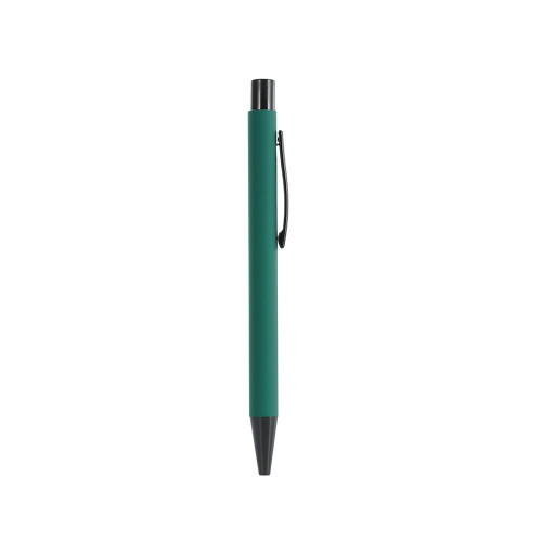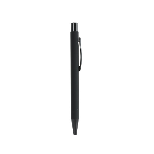Descrição: Caneta metálica com acabamento emborrachado, carga esferográfica azul 1.0mm e acionamento por clique.