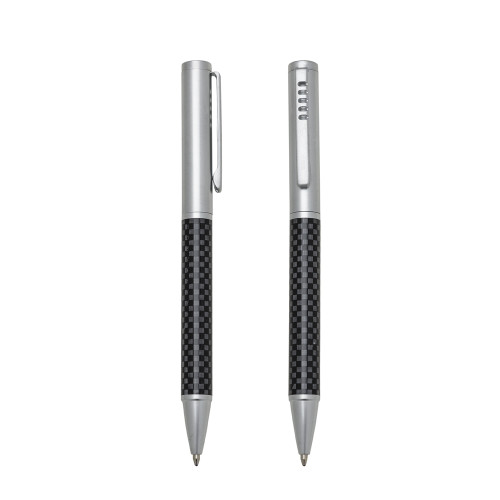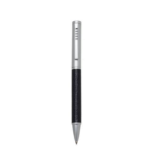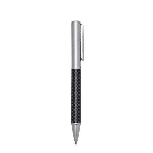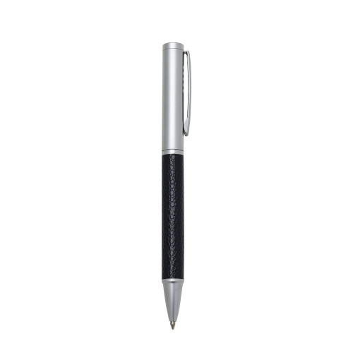 Descrição: Caneta metal executiva prata fosca com detalhes. Clip metal com cinco furos e aciona por giro.