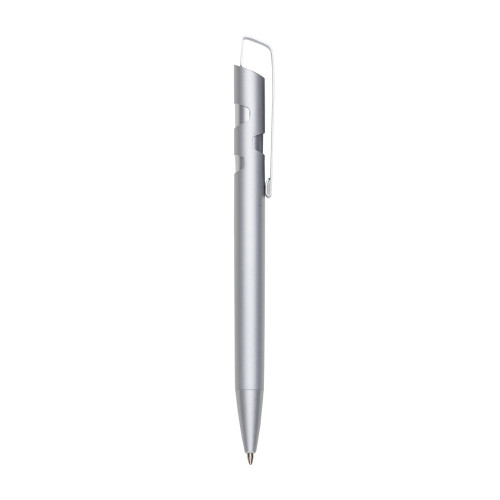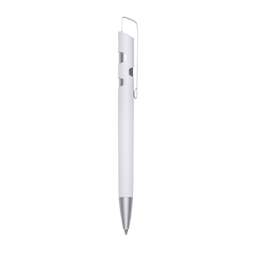 Descrição: Caneta semi-metal inteira colorida de pintura fosca e detalhes prata. Clip de chapa metálica, possui detalhes vazados na parte superior. Aciona por clique.