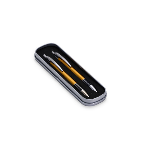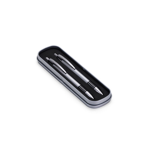 Descrição: Com este conjunto de caneta e lapiseira metálicas, escrever será uma experiência ainda mais sofisticada e elegante. O estojo em metal que as acomoda, possui revestimento em espuma para evitar riscos. A caneta possui carga esferográfica azul de 1.0mm, com acionamento por clique, já a lapiseira possui grafite 0.7mm.