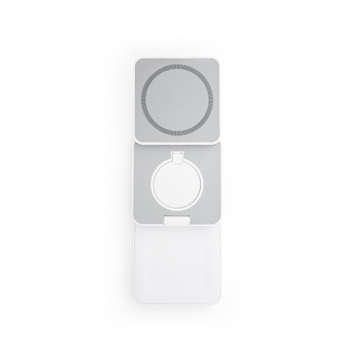 Carregador magnético wireless super rápido dobrável em ABS 100% reciclado, permite carregar três dispositivos simultaneamente: celular 15W, fones de ouvido 5W e smartwatch 2,5W, com tecnologia de carregamento sem fios. Incluso um grip magnético extra para ser colocado nos smartphones que não tenham e um cabo de carregamento rápido USB-C. Ideal para usar no escritório e levar em viagem. O produto também pode ser utilizado como suporte. Fornecida em caixa presente de papel kraft. Dobrado: 70 x 70 x 25 mm | Caixa: 110 x 90 x 36 mm
