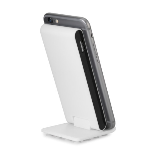 Bateria portátil. ABS. Com ventosas na base. Bateria de lítio. Capacidade: 4.000 mAh. Tempo de vida ≥ 500 ciclos. Com entrada/saída 5V/1A. Incluso cabo USB/micro USB para carregar a bateria. Bateria: 123 x 50 x 14 mm | Base: 65 x 58 x 10 mm