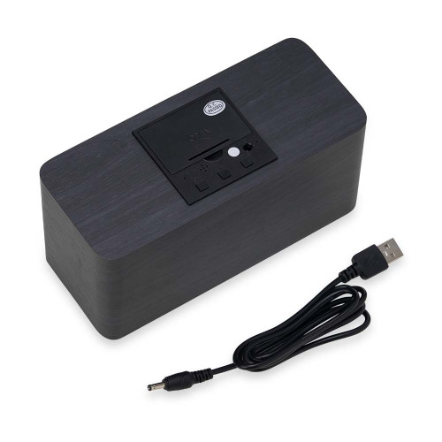 Descrição: Relógio digital LED com alarme e carregamento por indução, pode ser utilizado através da fonte USB (acompanha) ou 3 pilhas AAA (não acompanha). Produzido em MDF, o relógio possui um display LED na parte frontal, área para carregamento via indução na parte superior, parte traseira com mecanismo para ajustes, entrada DC 5V e compartimento de pilhas.