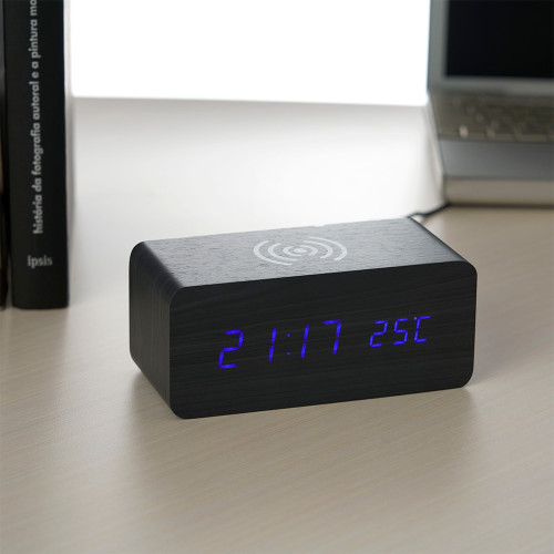 Relógio de Madeira com Carregamento por Indução Personalizado Frete Grátis - Mínimo 5