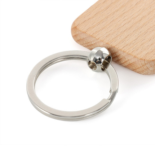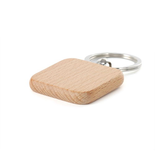 Descrição: Chaveiro em madeira com formato quadrado.