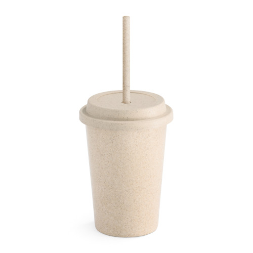 Copo de viagem. Fibra de bambu e PP. Com canudo retrátil. Capacidade: 450 ml. Food grade. Ø93 x 135 mm