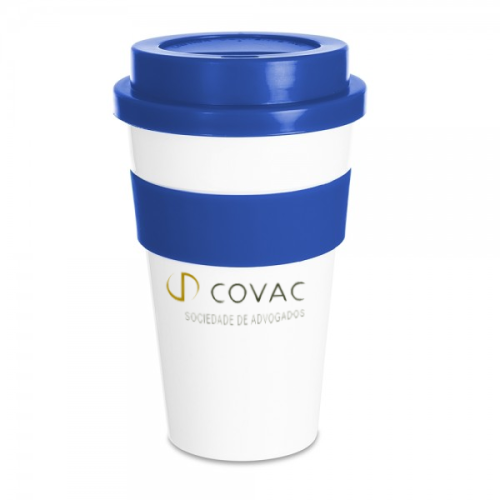 Descrição: Copo plástico 480 ml com tampa. Produzido em polipropileno e livre de BPA, o copo possui uma luva de silicone (removível) que impede a transferência de altas temperaturas, protegendo o usuário de queimar as mãos ao segurá-lo. Sua tampa com abertura de bocal é prática para ingestão de bebidas e evita o derramamento durante o transporte. Pode ser levado ao micro-ondas e lava-louças.