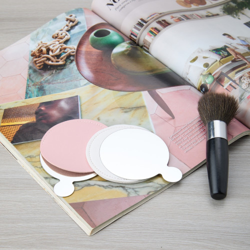 Medidas aproximadas para gravação (CxL): Espelho 5 cm x 5 cm - Estojo 6 cm x 5,5 cm
