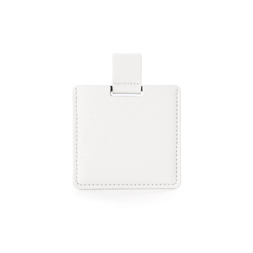 Descrição: Espelho inquebrável de aço inoxidável ultra fino com verso escovado e alça em couro sintético. Acompanha estojo de couro sintético.