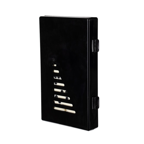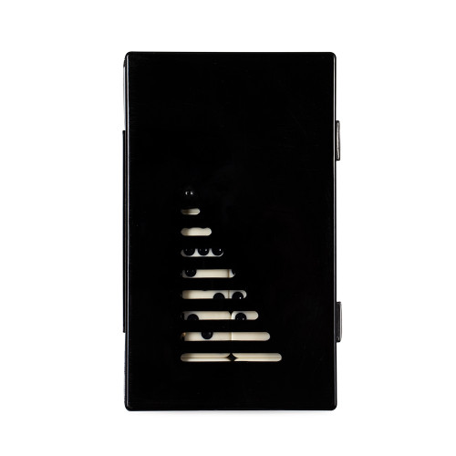 Descrição: Jogo de dominó com 28 peças com detalhes em relevo. Acompanha estojo plástico com travas de fechamento.