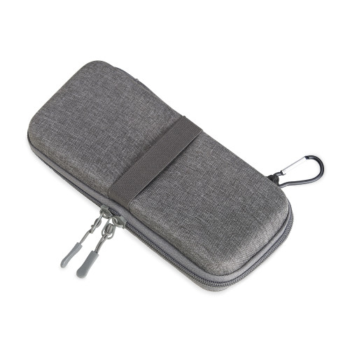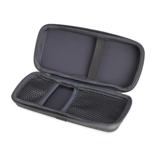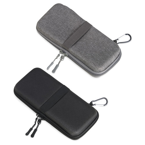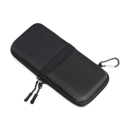 Descrição: Estojo de proteção para eletrônicos, feito em nylon resistente à água. Contém bolsos de malha internamente e elásticos para fixação na área interna e externa. Acompanha mosquetão.