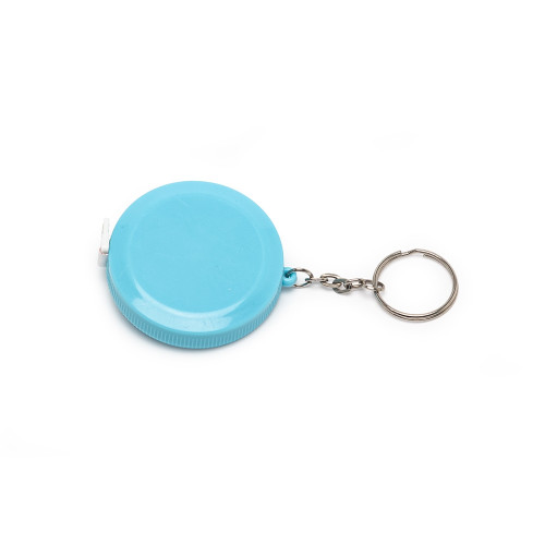 Descrição: Fita métrica de 1,50 metro em plástico redondo, frente lisa e verso com botão (trava). Acompanha chaveiro.