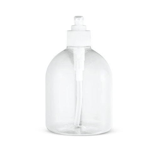 Frasco com doseador em PE e PP, com capacidade até 500 ml. Frasco recarregável e reutilizável. ø85 x 150 mm